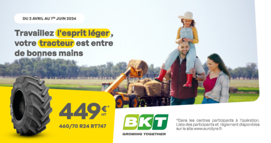 Du 2 avril au 1er juin 2024, profitez du pneu agricole BKT 460/70 R24 RT747 pour seulement 449€* HT ! […]